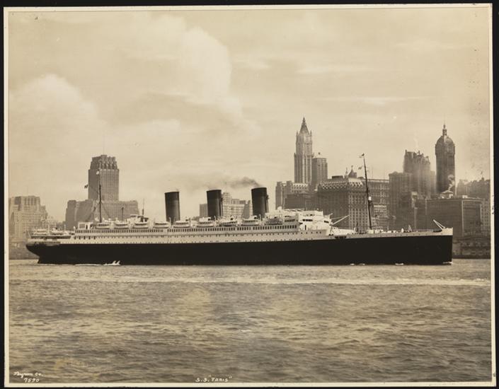 French Line, S.S. "Paris", Passing the Statue of Liberty.
