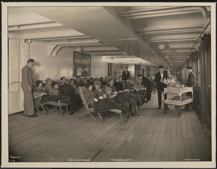 French Line, S.S. "Ile de France" Exterior, Vestibuled Part of Boat Deck.