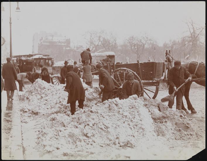 "Carting snow, Madison Sq." pencilled on verso. | Byron Co. stamp on verso with 250 W. 54th Street address.