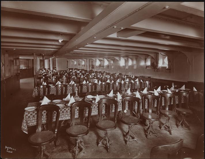 "H-A Line, S.S. President Lincoln, 3rd Class Dining Room" on neg.