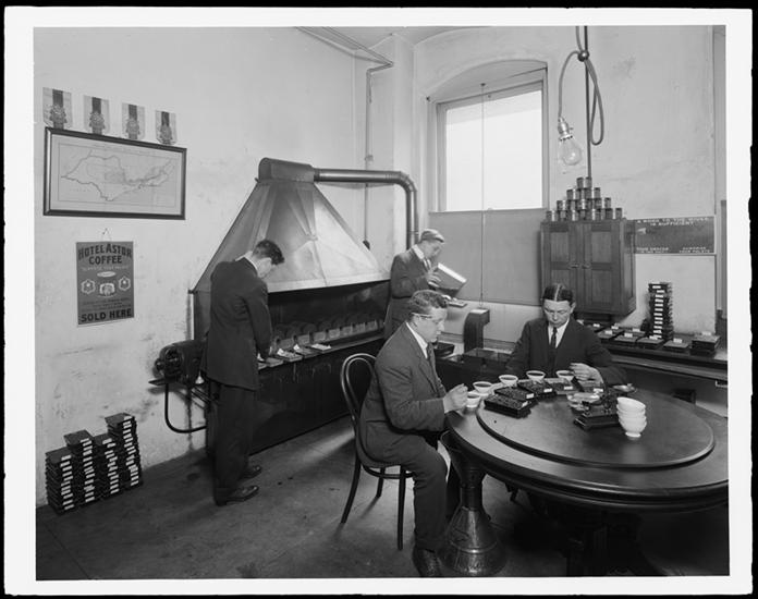 Franklin Street and Greenwich Street. B. Fischer and Co. Factory, testing coffee.