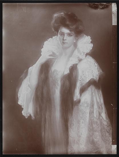 Photograph of a portrait painting of a woman; signed "N. Dale Latham."