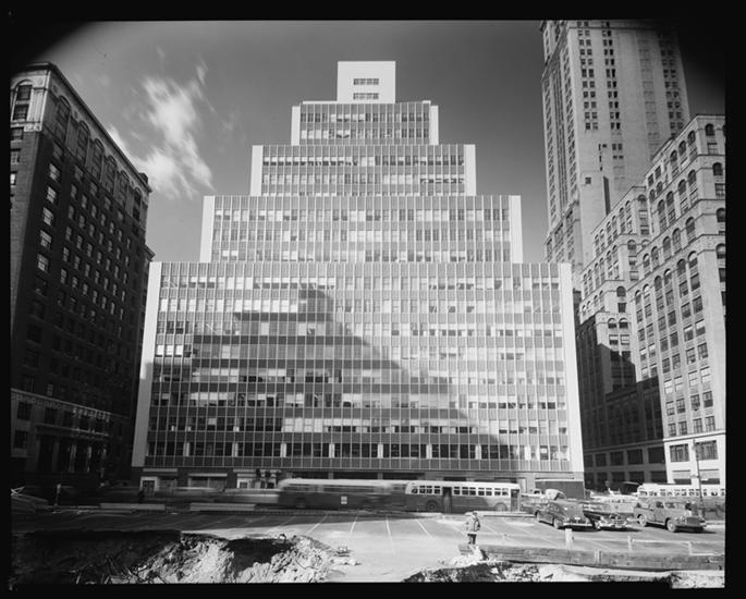 437 Madison Avenue. General view looking up from S.W. at Madison Avenue front and 49th Street south side.