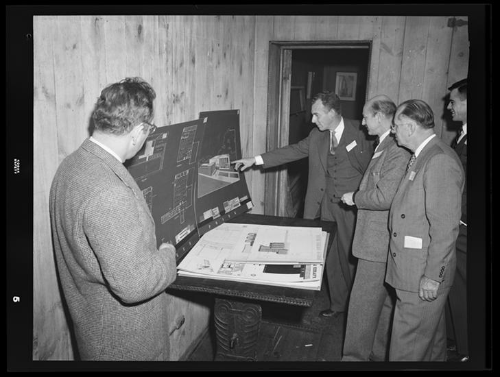Candid Shot, Judging of Competition at the Architectural League of New York, Beaux Arts Institute of Design, Students' Class A Project, Newspaper Plant