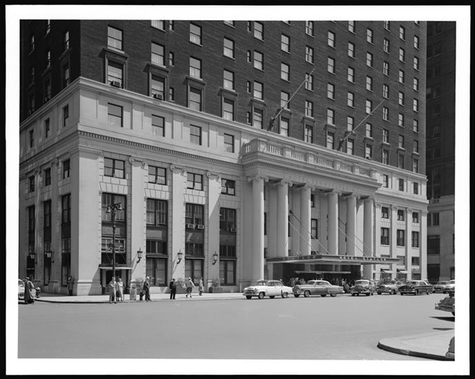 West 32nd Street and 7th Avenue. Hotel Statler, basement stories, main entrance on 7th Avenue.