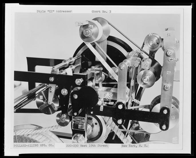 220 West 19th Street. Spec. Type K machine addressograph with cutter, detail of front.
