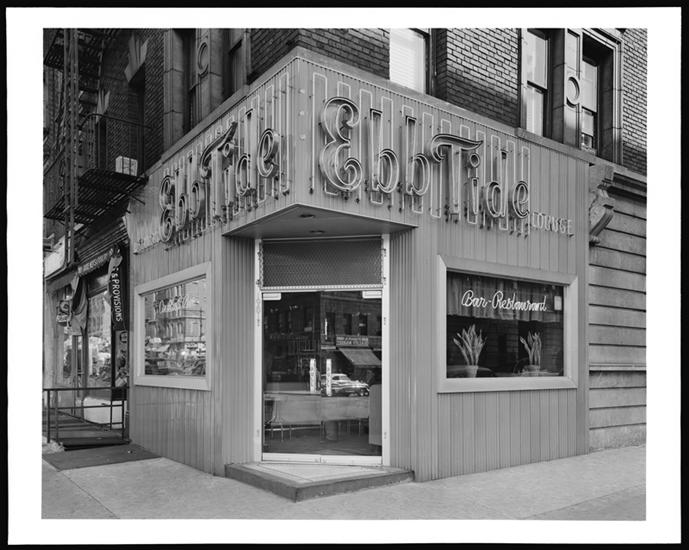 Amsterdam Avenue and 158th Street, N.E. corner. Ebb Tide Bar and Grill, exterior, street corner.