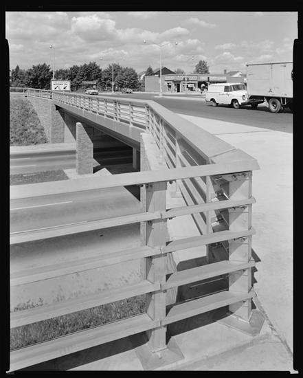 Long Island Expressway and bridges, looking across bridge at Bell Boulevard to north [to show aluminum railings].