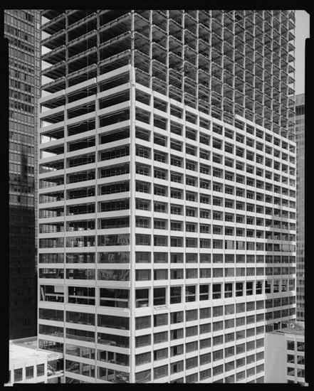 1285 6th Avenue between 51st and 52nd Street. Equitable Life Assurance, new home office, general exterior from N.E. from the roof of Rose Restaurant on 52nd Street.