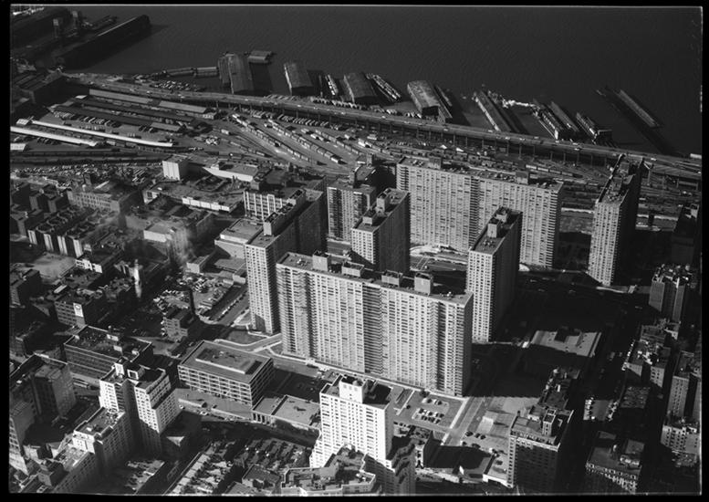 Lincoln Towers, aerial view looking S.E. from near 70th Street, also [showing] Lincoln Center.