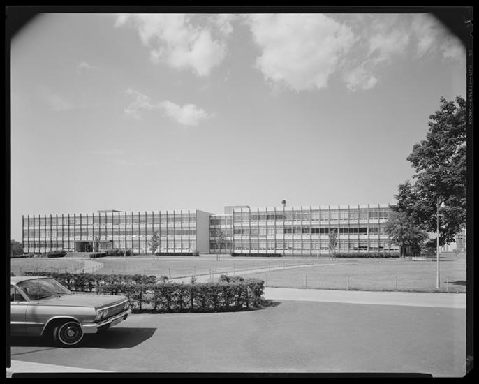 Kissena Boulevard. Queens College, Academic Building No. 1 Social Science Building, view looking N.W. along south wing.