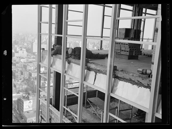 750 3rd Avenue Between 46th and 47th Street. [Construction view], Caulking Casement Before Raising Into Place