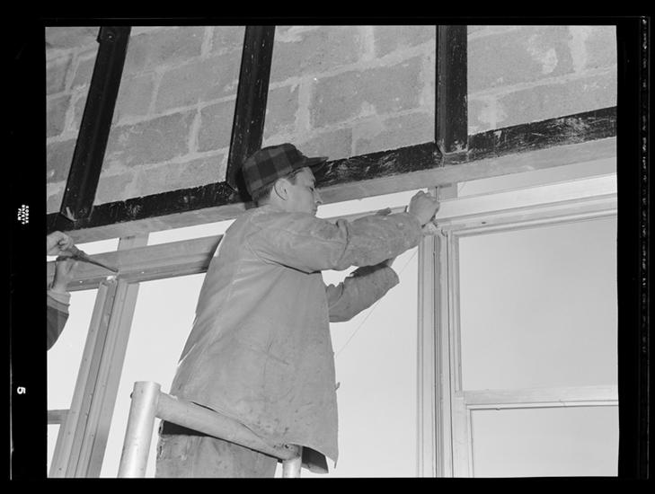 750 3rd Avenue Between 46th and 47th Street. [Construction view], Measuring and Lining Up Frames