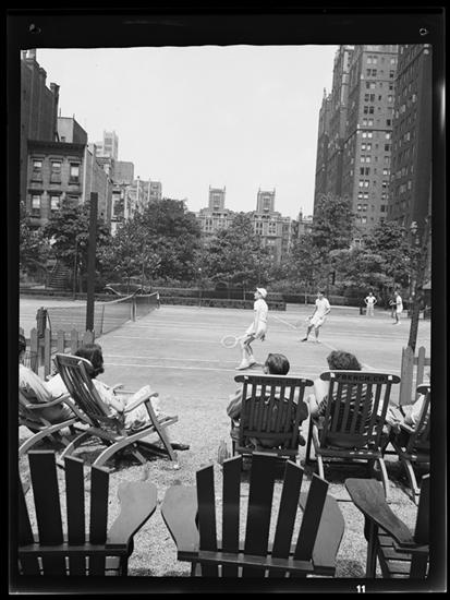 East 41st Street, l ooking north towards Tudor City. Tennis players. Rudge, Lloyd and Bell, Berkely.