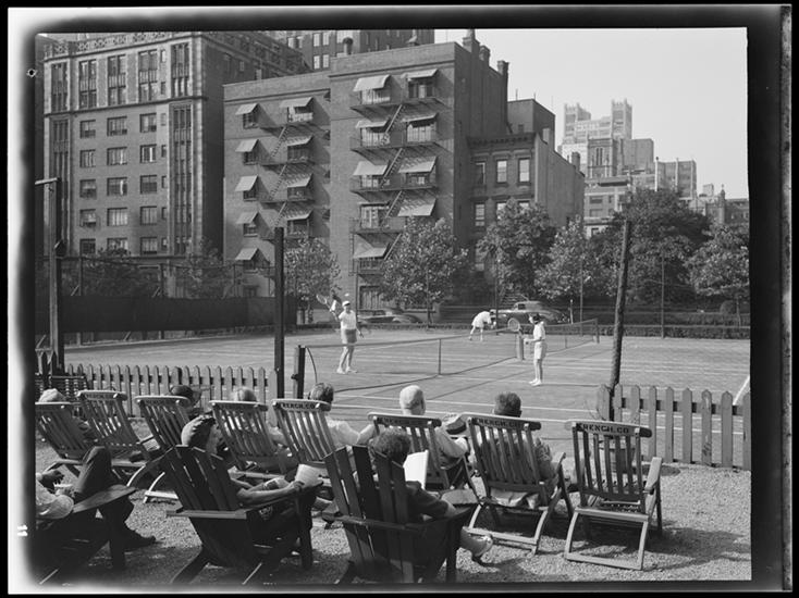East 41st Street, l ooking north towards Tudor City. Tennis players. Rudge, Lloyd and Bell, Berkely.
