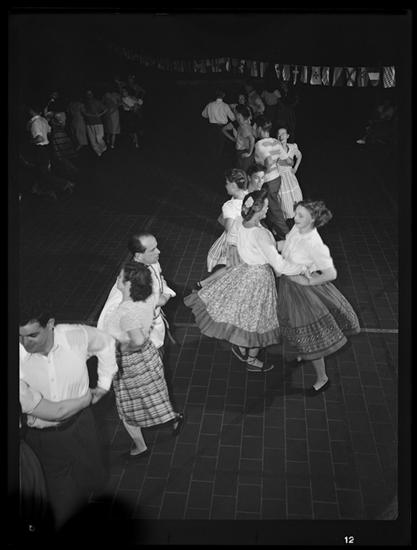 74th Street and Madison Avenue. Folk dancing at roof party at Madison Avenue Presbyterian Church House.