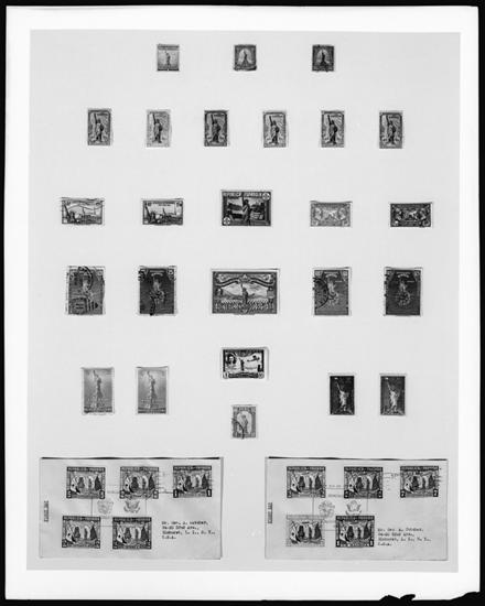 Frame with stamps, Statue of Liberty from all over the world.