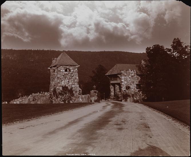 The Tuxedo Gate, a stone gatehouse at Tuxedo Park, N.Y.
