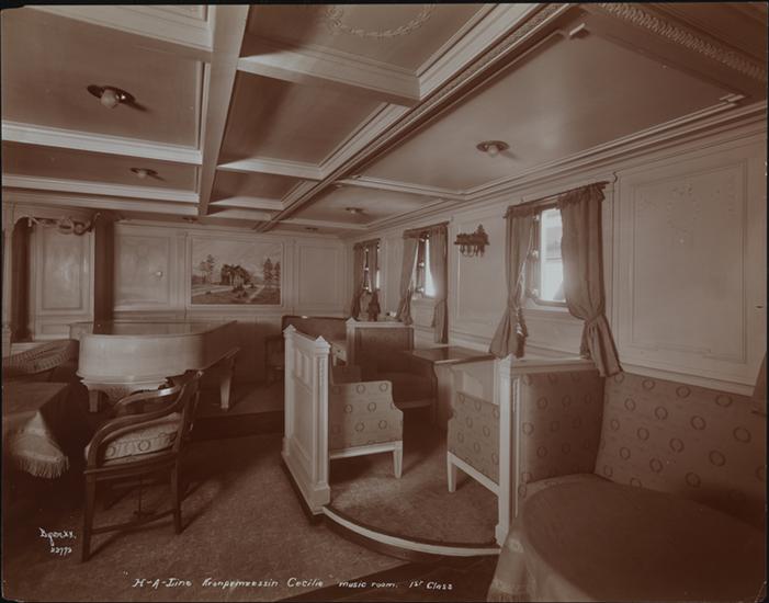 "H-A-Line Kronprinzessin Cecilie, Music Room, 1st Class" on neg.