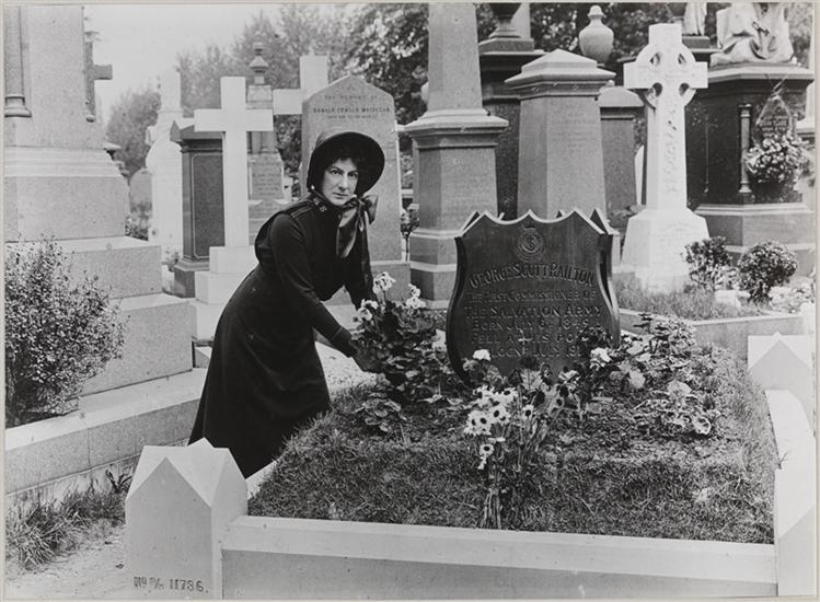 Charities, General Eva Booth at the Grave of Her Father, Gen. William Booth.