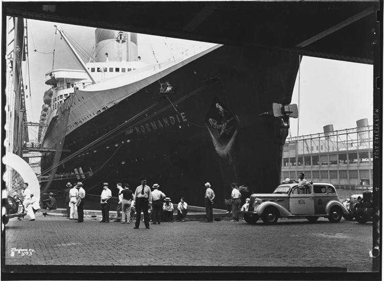 [S.S. "Normandie", at the French Line Pier, New York.]
