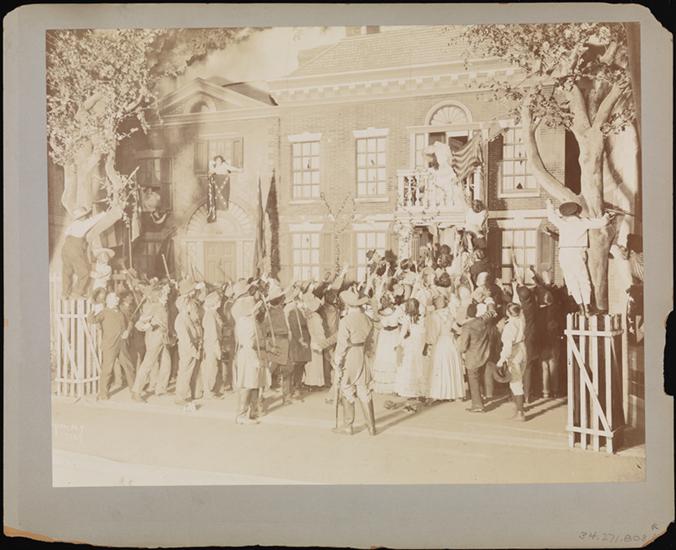 A scene from Clyde Fitch's romantic drama "Barbara Frietchie," produced by Charles Frohman at the Criterion Theatre, featuring Julia Marlowe as Barbara Frietchie.