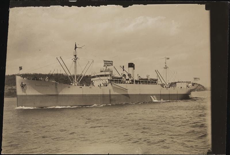 The ship "Poughkeepsie" in the water near the Newburgh Shipyards.