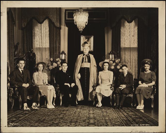Portrait of Francis Cardinal Spellman with Prize Winning Children at his Residence.