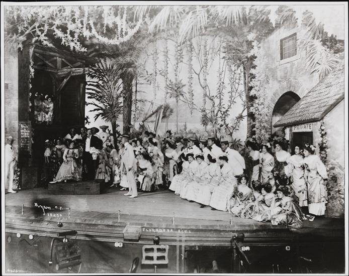 A scene from the musical "Florodora," book by Owen Hall and and music by Leslie Stuart presented at the Broadway Theatre, Broadway and 41st Street, New York City in 1900.
