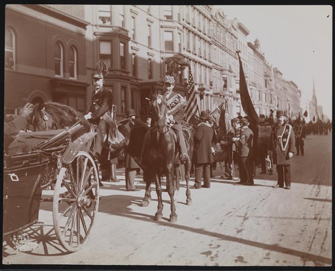 Parades - St. Patricks Day. March 18, 1895/ 57th St. Looking East from Broadway.