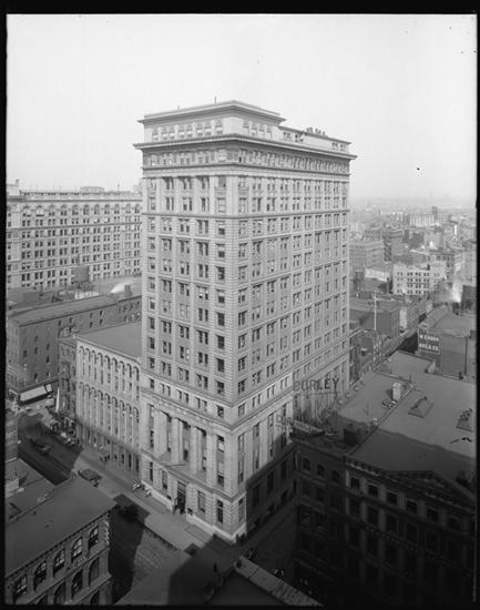 Broadway at the corner of Cedar Street. American Exchange National Bank Foundation Co.
