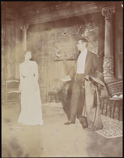 William Gillette as Sherlock Holmes and Clifford Bruce as Dr. Watson in the Charles Frohman production of "Sherlock Holmes" presented at the Empire Theatre in 1899.