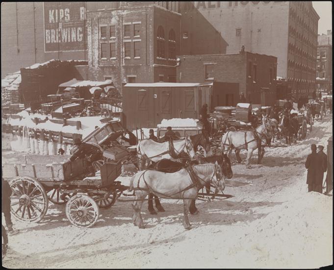 Snow Scenes, Blizzard, Street Scenes in New York City.