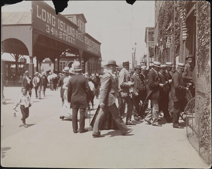 Street Scenes, Park Row, City Hall Park, Straus Milk Station.