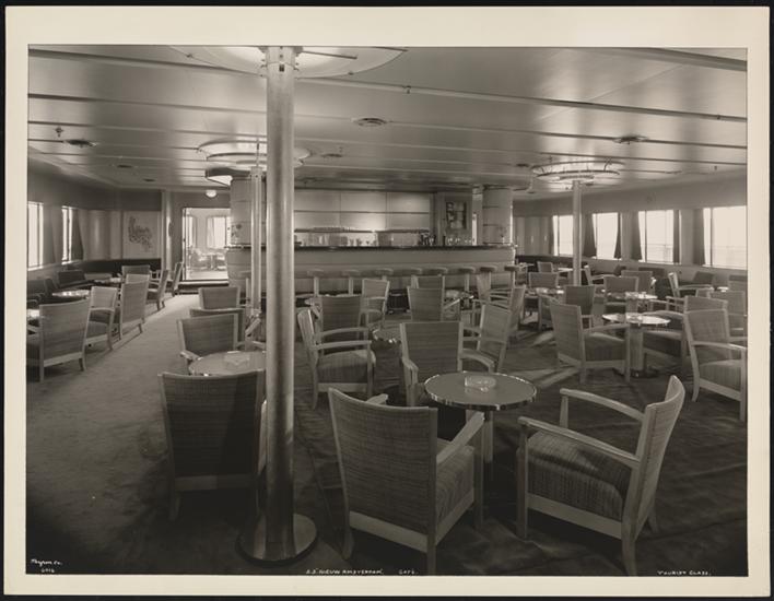 S.S. "Nieuw Amsterdam", 5th Street, Hoboken, N.J., Tourist Class, Cafe Veranda.