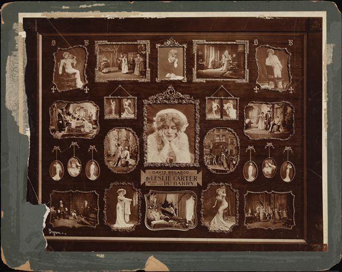 A presentation piece featuring photographic portraits of Mrs. Leslie Carter and David Belasco as well as production photographs from the play "Du Barry."