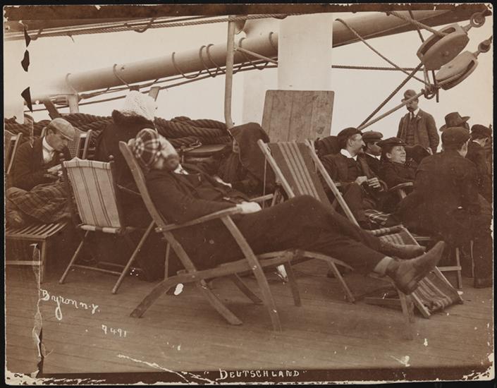 Passengers reclining on a deck of the S.S. "Deutschland".