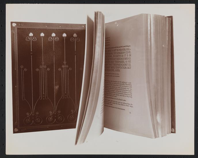 Close-up of the interior of a leather book cover with gilt decoration by Walter Dunn, publisher.