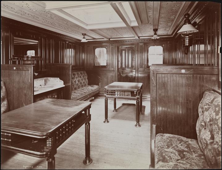 French Line, S.S. "La Savoie" Interior, Cabin Class, Conversation Salon Looking Forward.