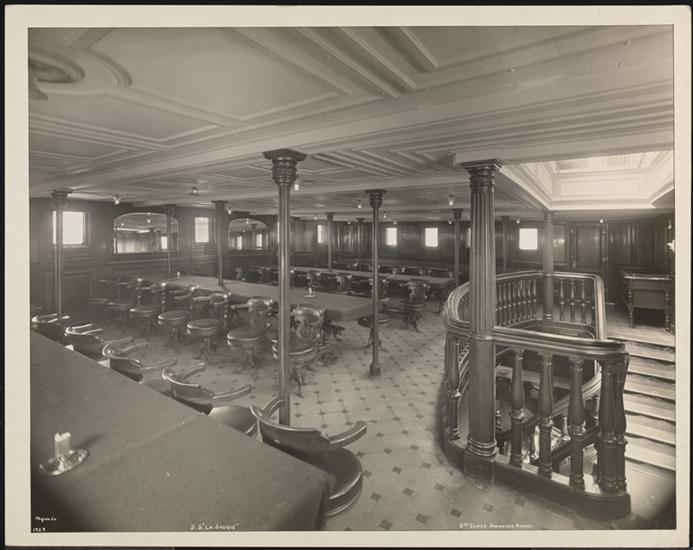 French Line, S.S. "Rochambeau", Tourist Third Class Interior, Smoking Room.