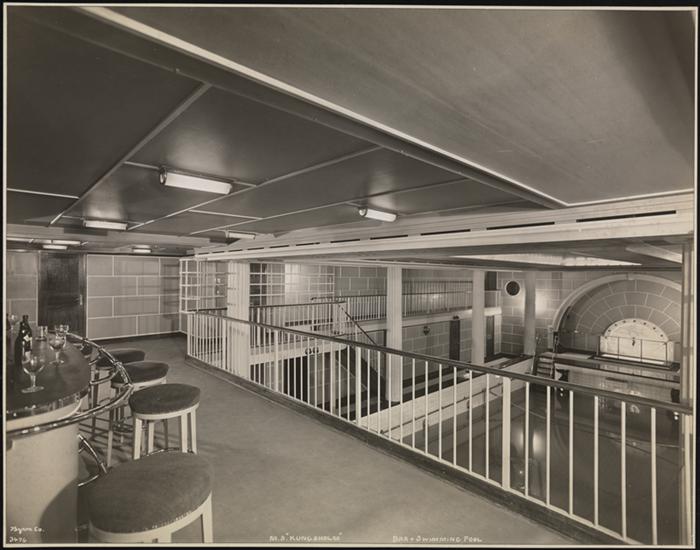 [French Line, S.S. "Normandie", Swimming Pool Bar, Cabin Class.]