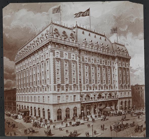 Hotel Astor, Exteriors, Bldg. and roof garden scenes.