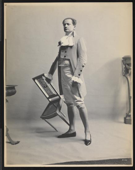 Description Portrait of Mr. Whitney Warren, holding a chair, at the James Hazen Hyde Ball, January 31, 1905.
