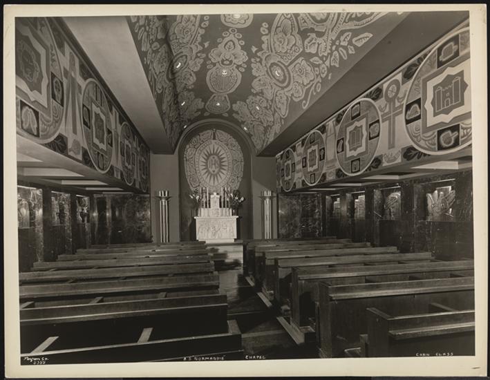 French Line, S.S. "Normandie" Pier 88 N.R., Cabin Class, Interior, Panel Over Entrance in Rear of Chapel.