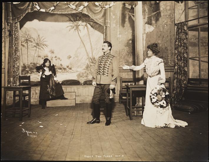 A scene from Paul M. Potter's play "Under Two Flags" presented by Charles Frohman in 1901 featuring Blanche Bates as Cigarette.
