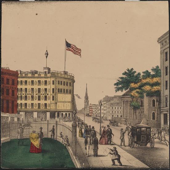 View of St. Paul's Church and the Broadway Stages, N.Y. 1831.