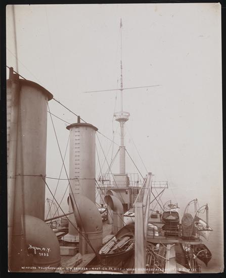 Wireless Telegraphing--N.Y. Cruiser--Mast 150 Ft. High--Where Messages Are Sent to B.S. Mass.
