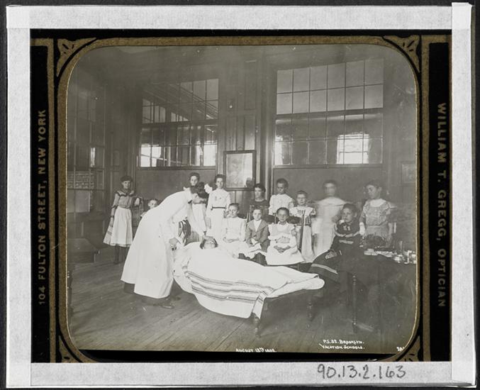 A cozy corner in a Brooklyn public school (teaching the girls houskeeping).