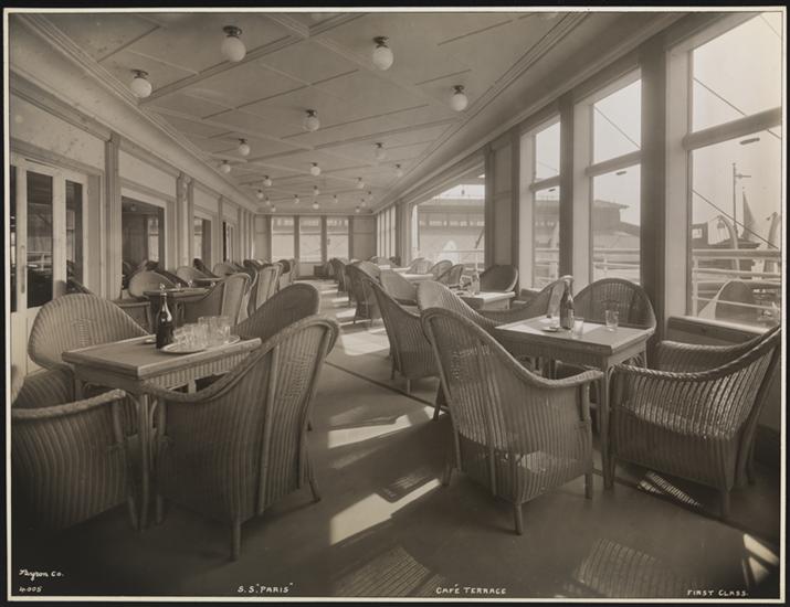 French Line, S.S. "Paris", First Class, Interior, Cafe Terrace.