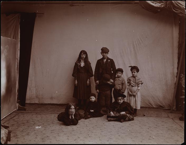 A group of "slum" children posed on a set.